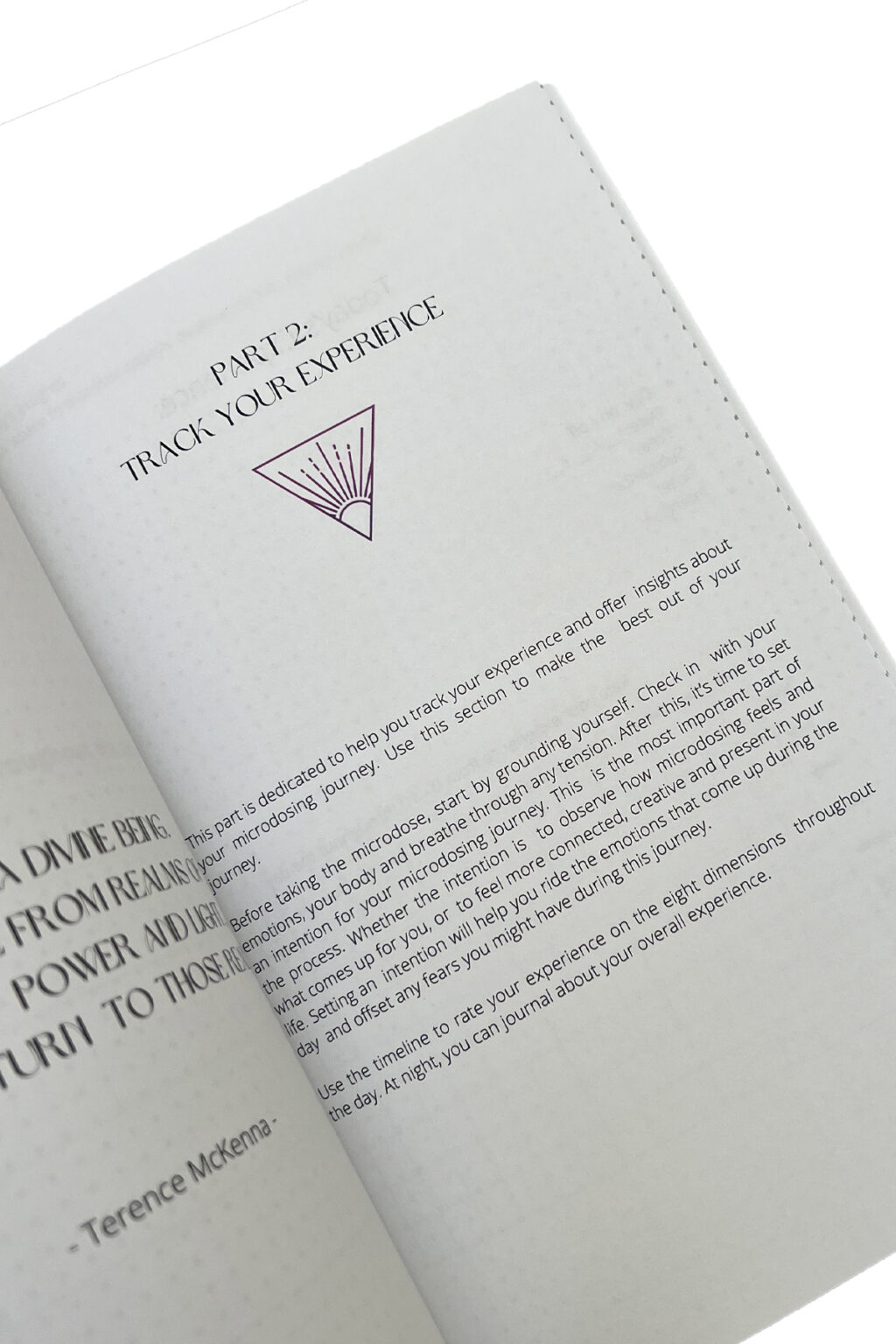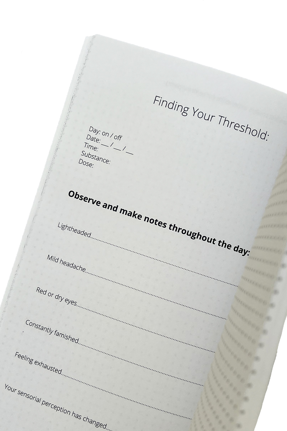 • The third part will help you track your experience systematically, during days on and off. Systematic tracking is essential because it helps you gather personal data about how micro dosing impacted you in various areas of your life and it helps you readjust your microrosing to optimize your personal and emotional growth.